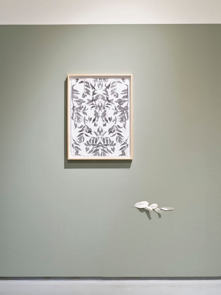Marielle MacLeman charges traditional craft based processes with critical precision and conceptual rigour. Rooted in care, her works are applied studies of materials and contexts. From pulped nursing uniforms as paper, or tumble-dryer lint as cloth, to drawings made with the felled remains of diseased trees, reconstituted materials take centre stage in MacLeman’s unfolding corpus on care, service and labour.