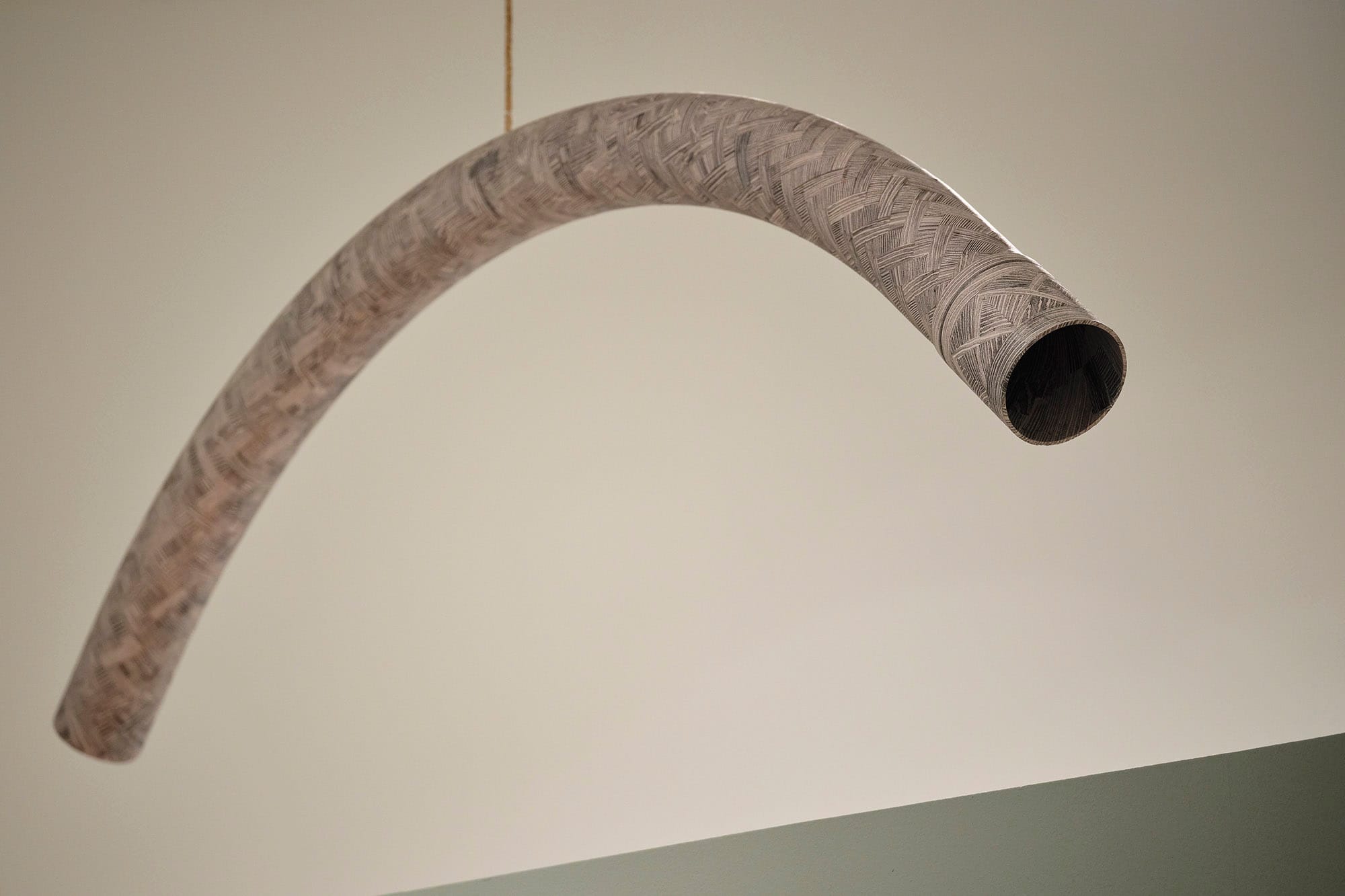 ESB ducting bend, graphite, paper, polypropylene rope, cotton, silk, woodland dyes